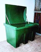 Данная конструкция легко монтируется, проста в обслуживании, не требует защиты от солнечных лучей и после упаковки в защитный кожух может размещаться на открытом воздухе. Гарантия -10 лет. Цена – от 800 до 5.000 € Ящики для кормов Предназначены для краткосрочного хранения небольших запасов корма (емкость ящиков от 350 до 2.500 л).