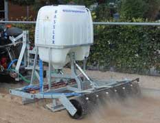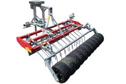 Борона-планировщик Бороны-планировщики являются главным средством по уходу за конными полями и предназначены для разрыхления, выравнивания и дополнительного закрепления/уплотнения еврогрунта. Борона-планировщик представляет собой массивную раму из оцинкованной стали с различными конструкционными деталями. Основные элементы бороны-планировщика для еврогрунта - это пружинные зубья и планировочная доска, а также различные виды прикатывающих катков (сетчатый, резиновый, гладковальцовый) и насадок для регулируемого уплотнения грунта.