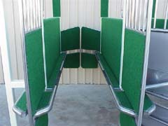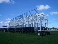 Стартовые боксы для скачек Стартовые боксы для скачек изготавливаются из нержавеющей стали и имеют сборно-разборную конструкцию. Количество боксов – от 6 до 20 лошадей.