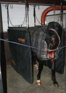 Для более активного и системного воздействия импульсной магнитерапии на лошадь в стационарных условиях используются магнитные денники.
